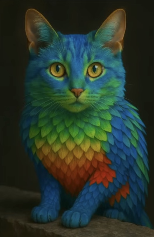 The feather-cat example looks like an architectural difference.