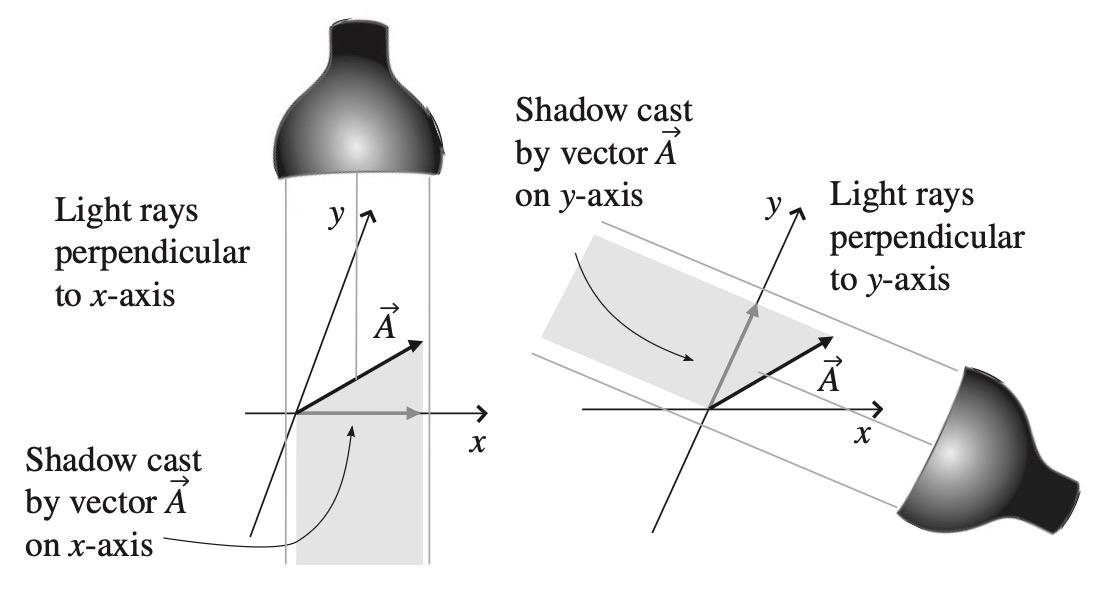 Projections using light sources perpendicular to x- and y-axes - image source A Student’s Guide to Vectors and Tensors